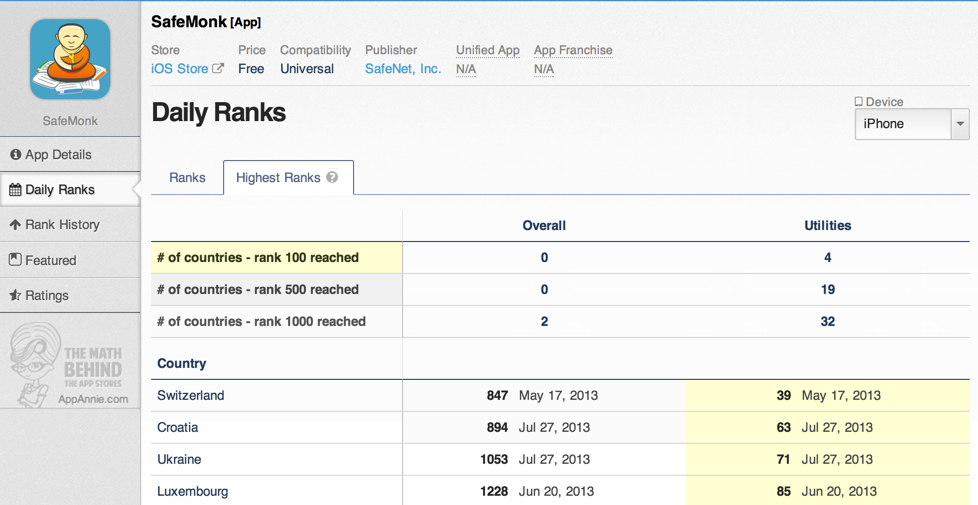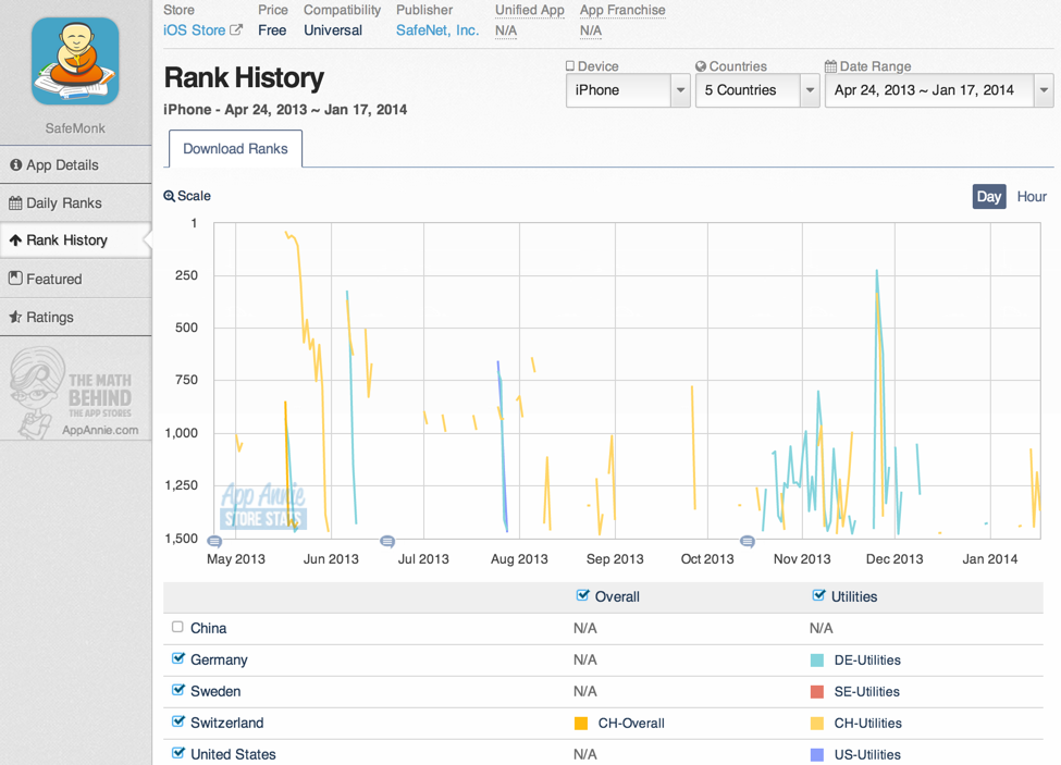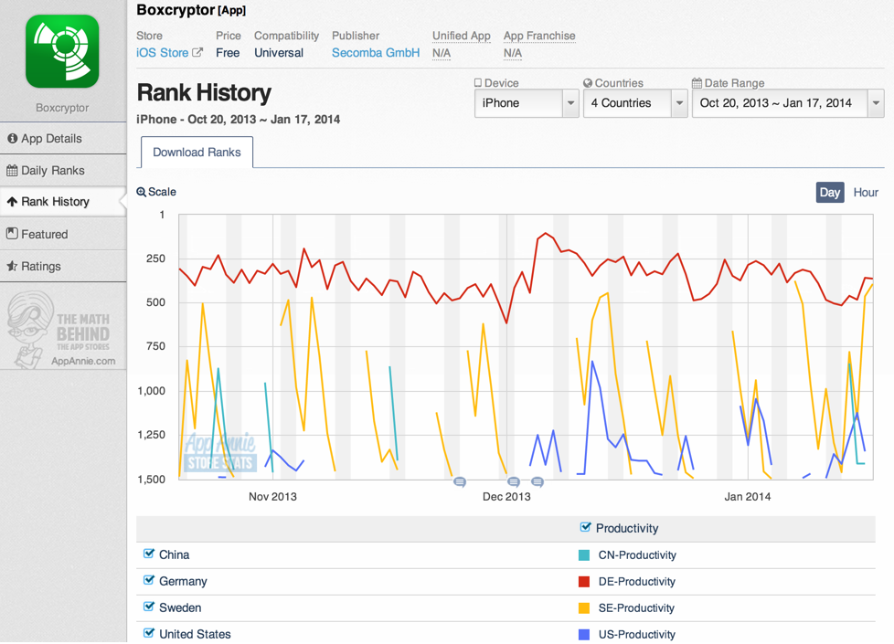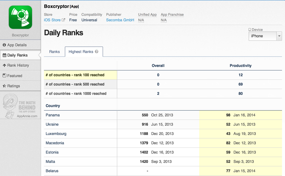 用App Annie分析几个第三方加密App在市场上的占有率,并不容乐观: