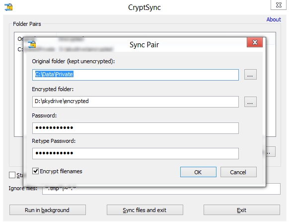 CryptSync是一款「简单粗暴」,仅支持Windows的开源软件,其原理是:设置源目录(明文)与目标目录(加密,用于同步上传),每当源目录中的文件变化时,自动将文件加密复制一份到目标目录用于上传备份。