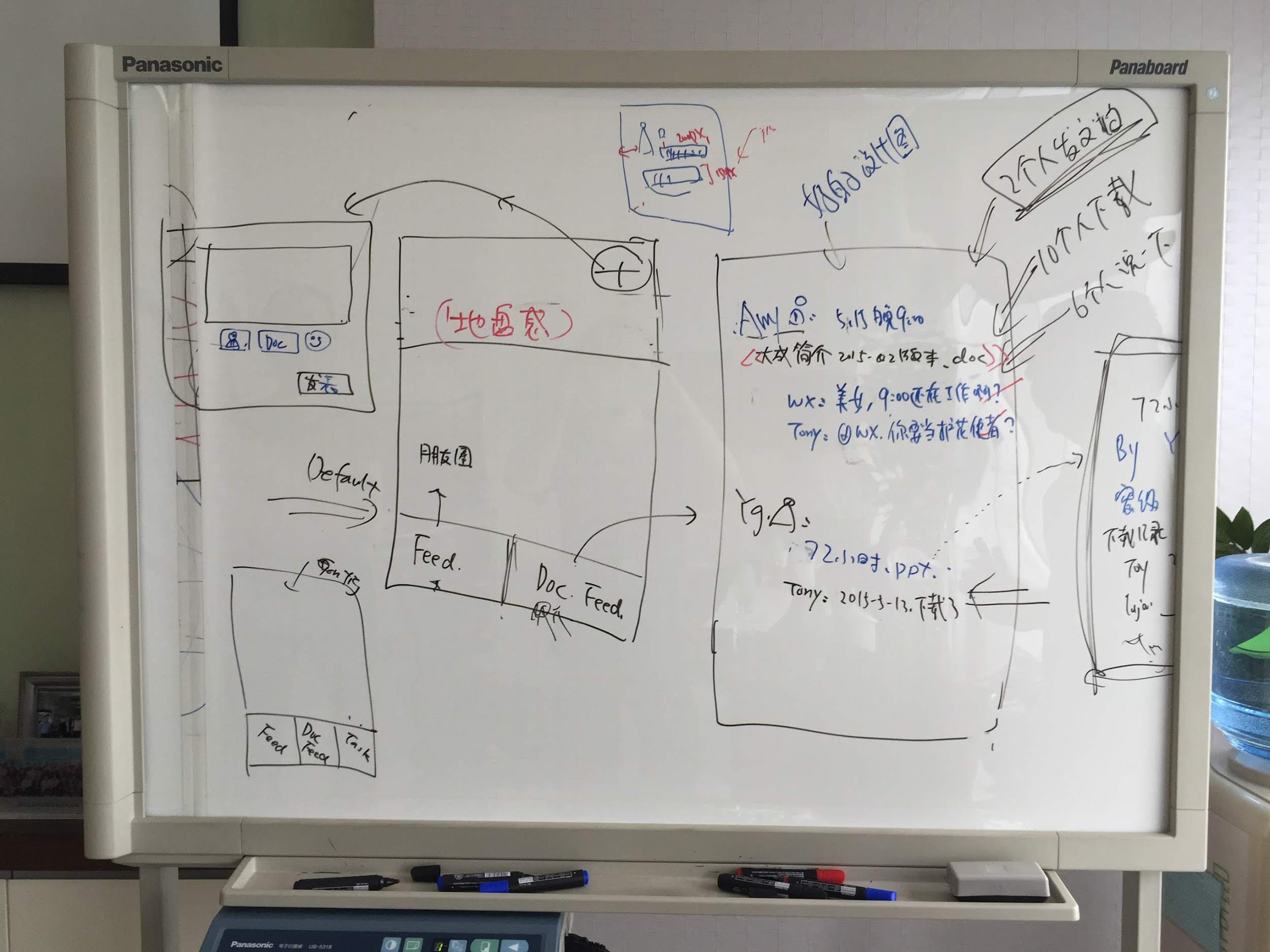 在回顾时,我翻了旧照片,找到一张 2015 年 5 月 6 日,在腾讯大厦拍的照片,这是个起点。白板上的草稿,是 Tony 随手画下的。