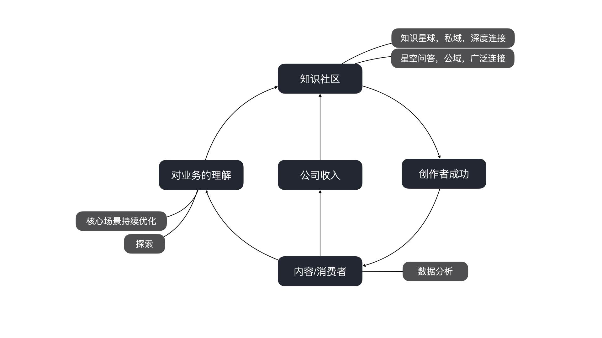 这是我理解的知识星球的系统循环图,图中循环着的四个部分分别是: